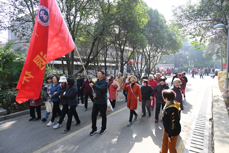 表演结束后离退休工作处举行了环山健步走活动,大家在二龙山环山路上或一道并肩而行,或你追我赶,谈笑风生,一路欢声笑语,共同庆祝自己的节日。