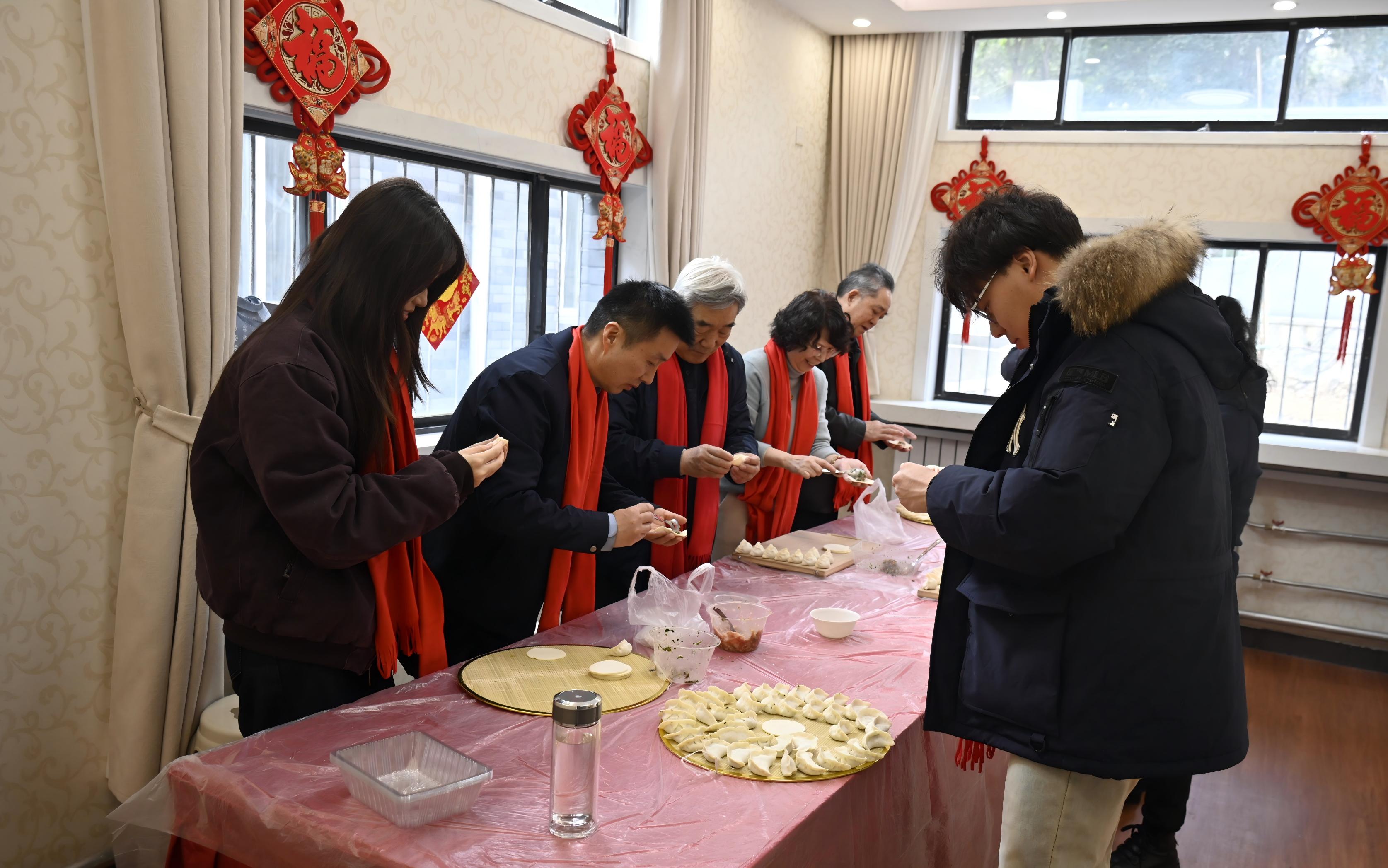 歌声渐息,温情延续。在“团圆午宴·共话情谊”环节,大家围坐在一起,品尝着自己亲手包的饺子,吃着热气腾腾的团圆饭。席间,老教师们询问学生们的学业与家乡,学生们则关心老师们的身体与生活,大家畅谈甚欢,亲如一家。